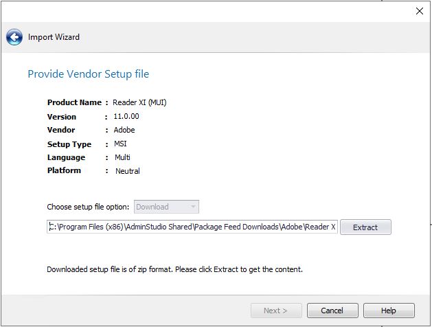 6. If the downloaded file is of zip format, click the Extract button, and then browse and open the extracted setup file, and click Next.