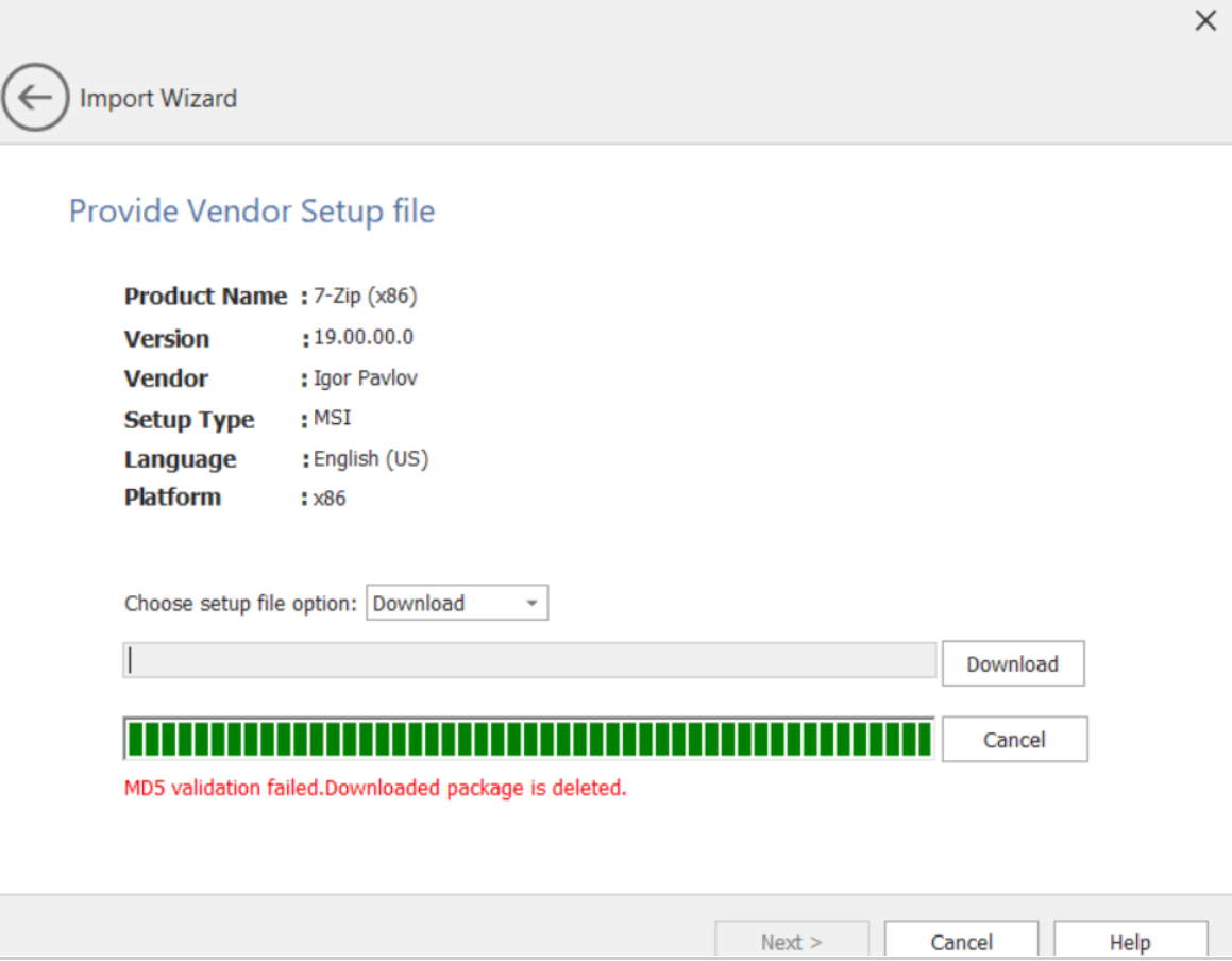 Packages in the Package Feed Module are downloaded directly from the software vendor’s download links. These packages are then put through anti-virus checks and MD5 Checksum and SHA validations to make sure there is no malicious content injected during download. These checks make sure that all of the packages are fully safe and secured before they are hosted on Flexera’s secured cloud infrastructure site.