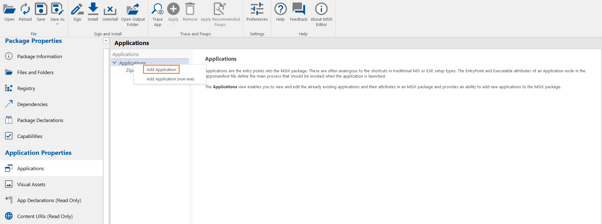 2. Right-click on the Applications node, and then select Add Application from the context menu.