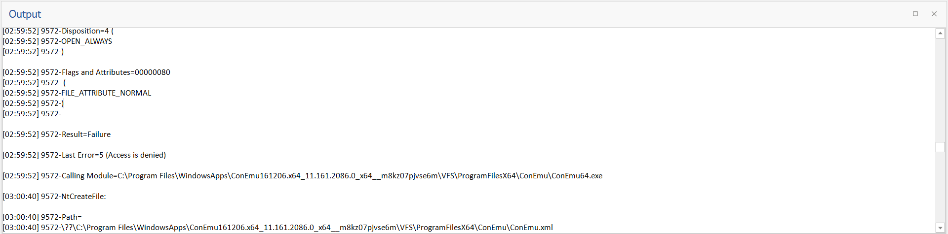 Upon successful action, a message will be shown in the Output window.